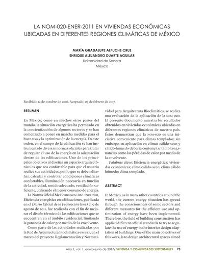 LA NOM-020-ENER-2011 EN VIVIENDAS ECONÓMICAS UBICADAS EN DIFERENTES REGIONES CLIMÁTICAS DE MÉXICO