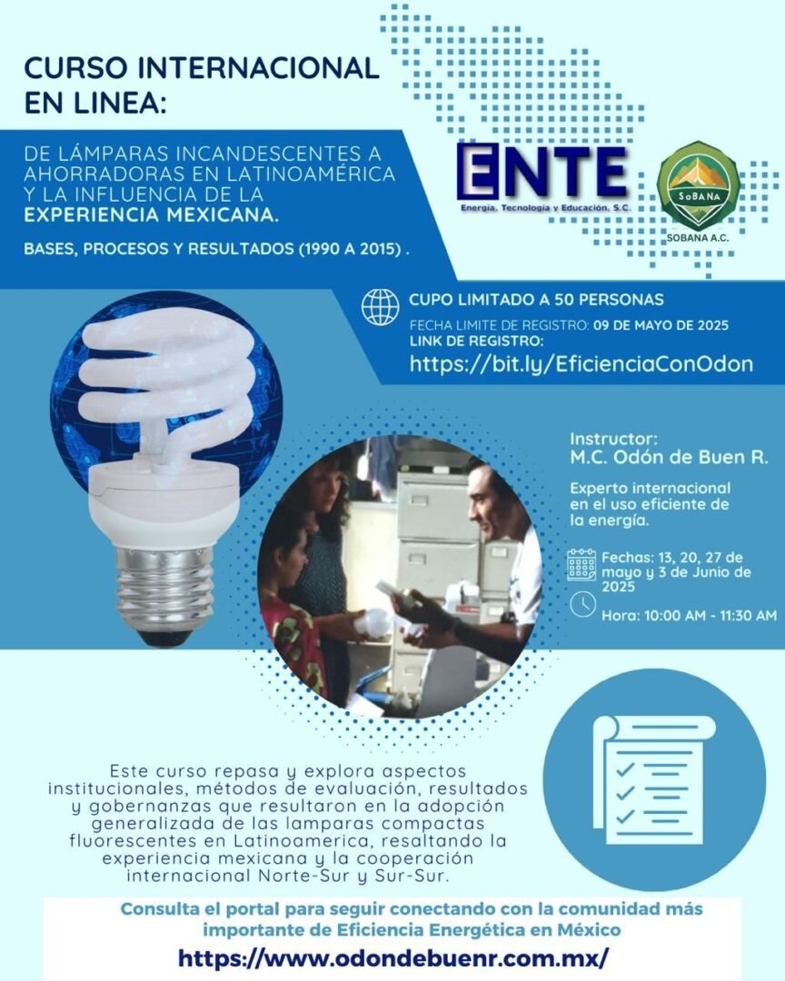 Instructor: M. en C. Odón de Buen R., experto internacional en diseño, gestión y evaluación de programas de ahorro y uso eficiente de la energía.